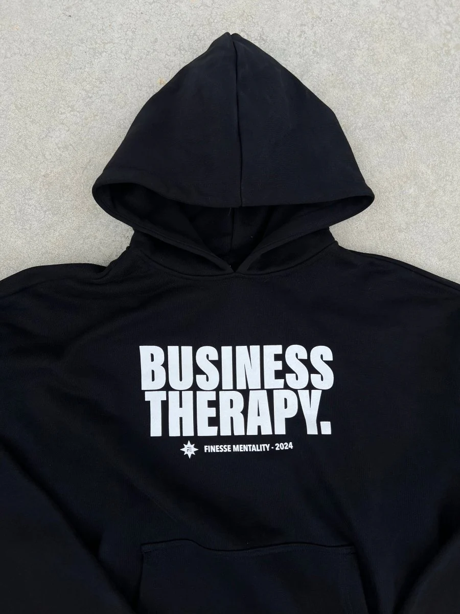 HOODIE "BUSINESS THERAPY" BLACK PUFF